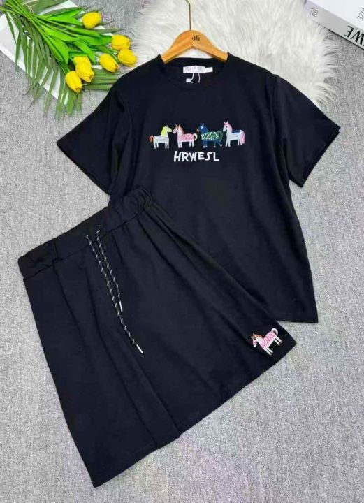 时尚设计感刺绣小马短袖T恤显瘦半身裙裤夏季洋气减龄两件套,独立包装,码数1/3/4/5码,数量179套,货号1122#46