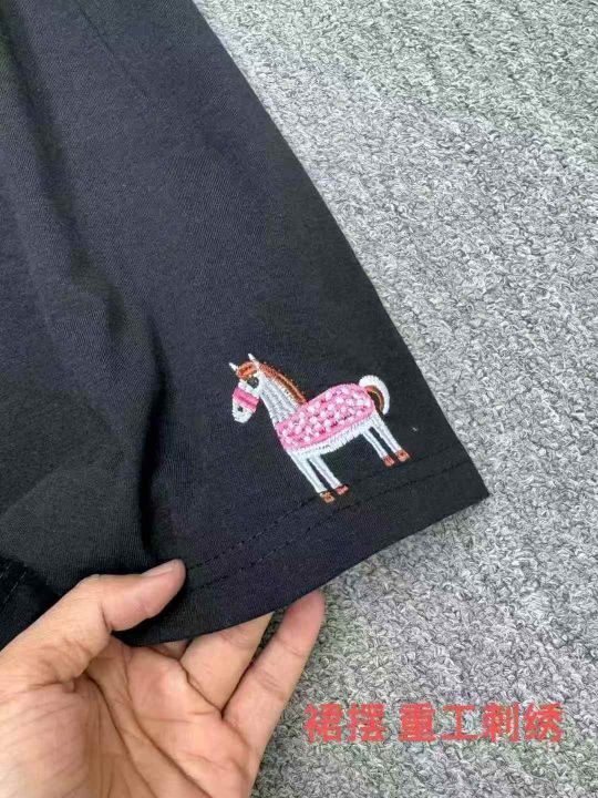 全清价8.9元时尚设计感刺绣小马短袖T恤显瘦半身裙裤夏...