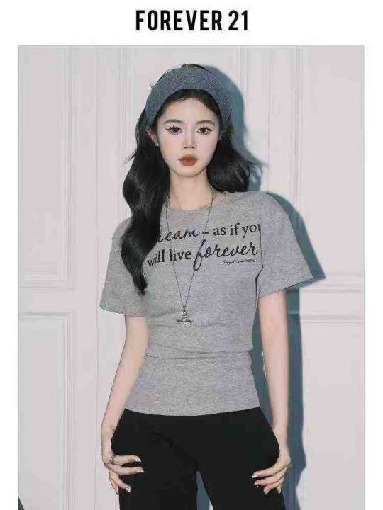 ☕️纯棉正肩英文字母短袖t恤女夏季灰色修身chic韩系设计感独特绝美上衣274...