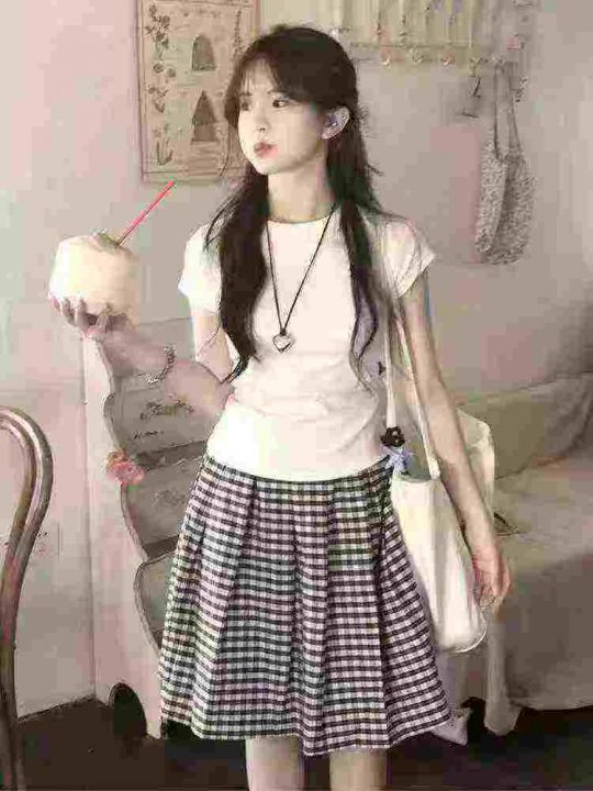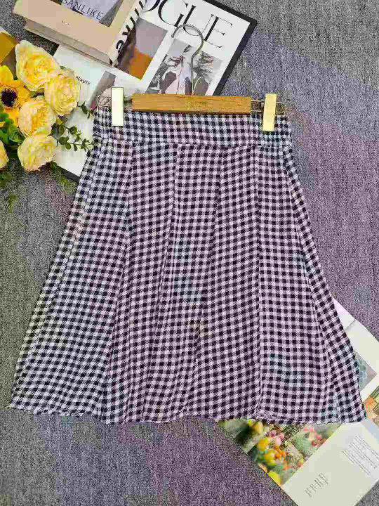 3.5清电商仓回收65件韩系风黑白格子短裙春夏薄款口袋...