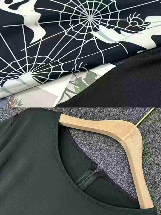 跨境电商赫本复古万圣节印花长袖大摆连衣裙送丝带,独立拉链包装,410件,XL-4XL,全清8.8