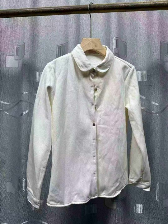 日系简约舒适加厚婴儿绒质感通勤减龄元宝领子母扣保暖长袖衬衫,面布纯棉质量好,独立包装,S - 2 x L码,380件左右,全清7.8块