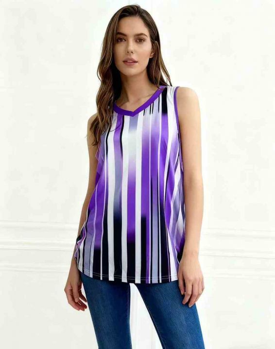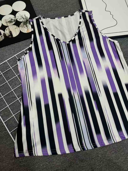 复古条纹背心吊带宽松显瘦V领宽松通勤夏季穿着舒适女士印花仙气,独立拉链包装,数量300左右,码数XL-5XL,全清3.5元。 货号:1323
