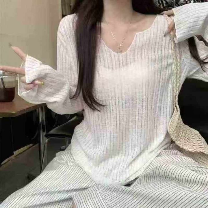 1200件早秋新款韩系宽松高级感撞色条纹百搭POLO领长袖针织毛衣,独立包装,...