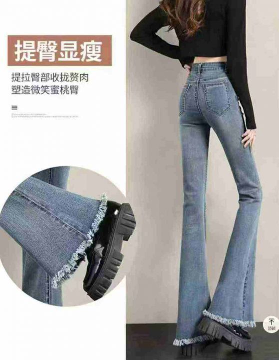 秋季新品高弹力网红爆款洗水棉女装微喇叭牛仔裤,独立...