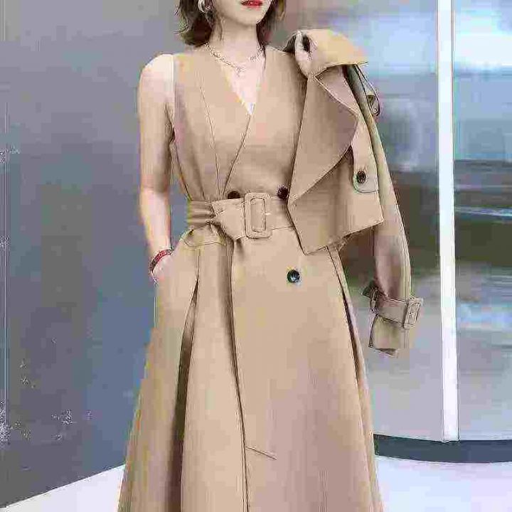 天猫仓回收73套温柔韩系成熟风优雅气质女士风衣连衣裙套装,码数L-4XL。两件套版型质量都很好,裙子有口袋,有独立包装。超低价秒杀!。 货号:1323