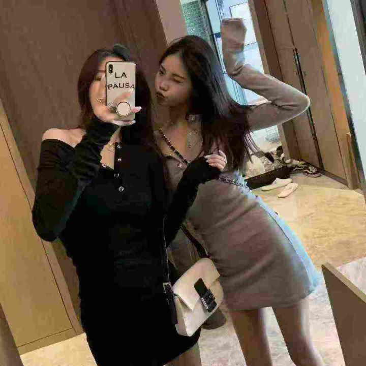 长袖包臂性感气质修身显瘦辣妹弹力连衣短裙,独立包装,码数1-4码,185条,大货黑色多,货号1114#21