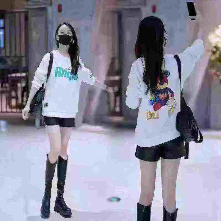 4.5清电商仓回收980件中淑风气质休闲慵懒印花圆领卫衣...