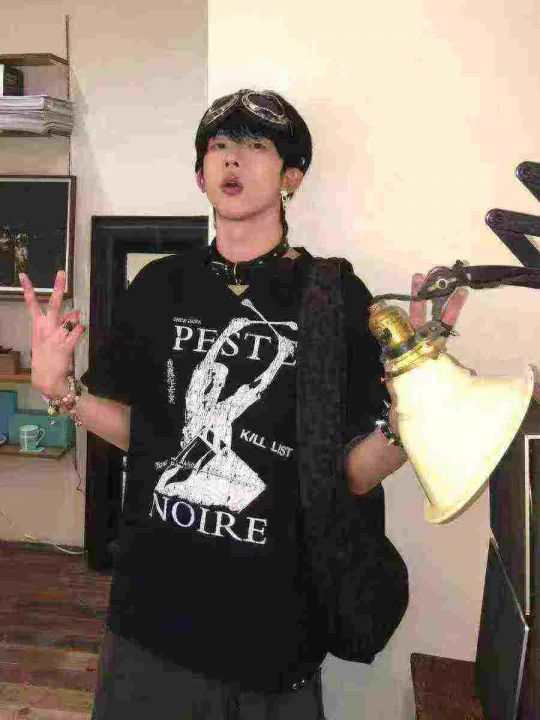 电商仓回收48件纯棉潮男黑色酷帅宽松大版男T恤,码数XL码。版型质量很好,货品新,全部独立包装。