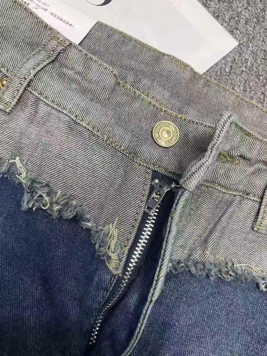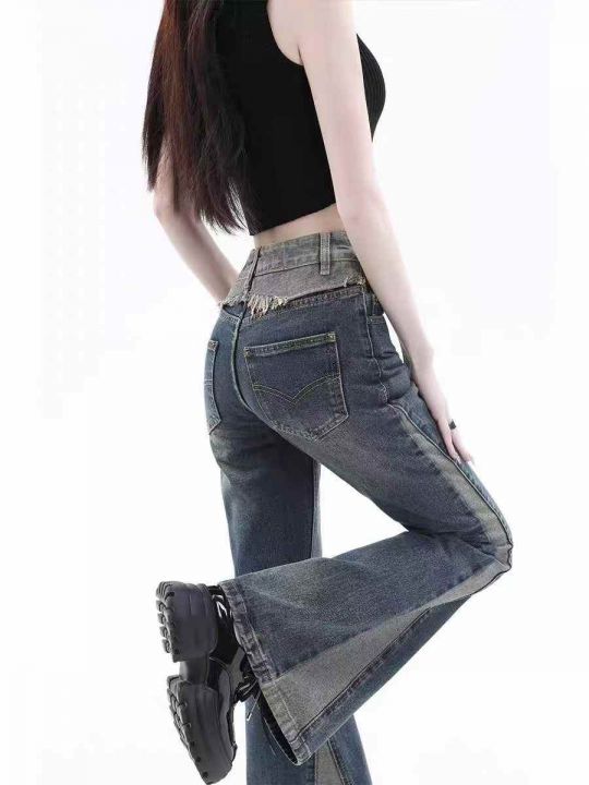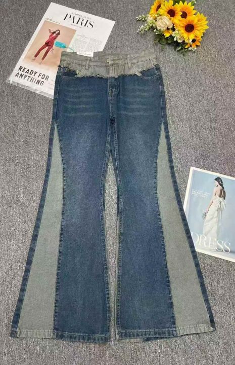 秋冬新款高品质复古网红设计款阔腿微喇叭牛仔长裤,独...
