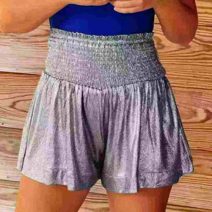 3.8清320件辣妹短裤裙新款休闲运动女装短裤宽松松紧腰垂感闪光裤子现货 码...