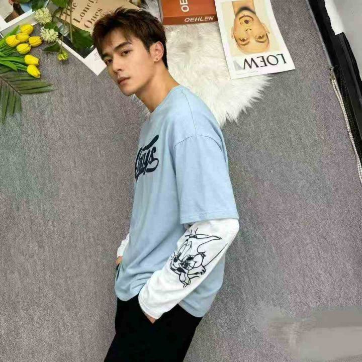 捡漏326件假两件长袖可爱图案t恤男潮牌嘻哈春秋棉T上衣,独立包装,码数M-2XL,分货加1,货号115#70。 货号:1323