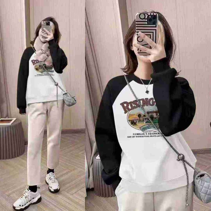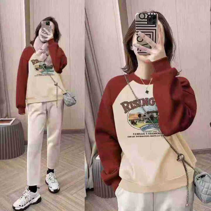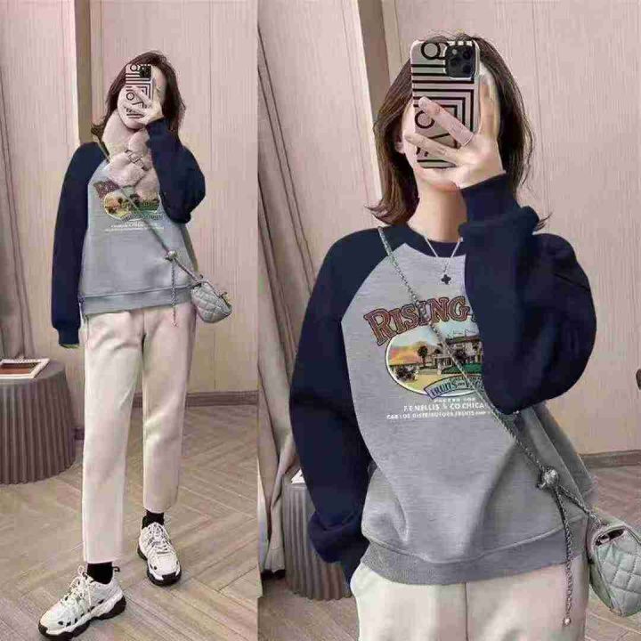 ☕️美式圆领卫衣新款女春秋宽松设计感小众拼接插肩长袖上衣,1313件全清7.8元,100件起分货8.8元,M到3XL码数,图片小整款图片色,独立包装,秋款华棉不加绒卫衣。