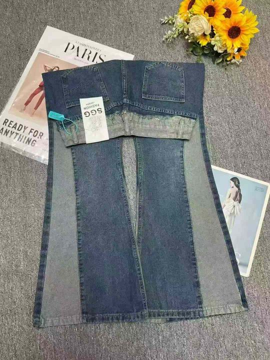 秋冬新款高品质复古网红设计款阔腿微喇叭牛仔长裤,独...