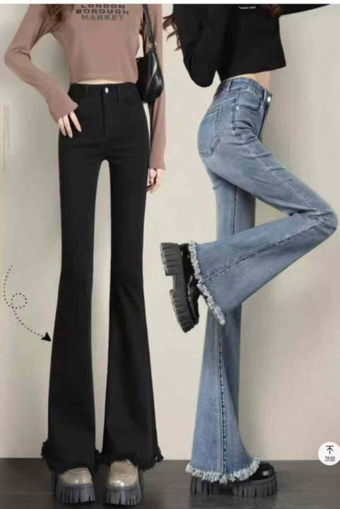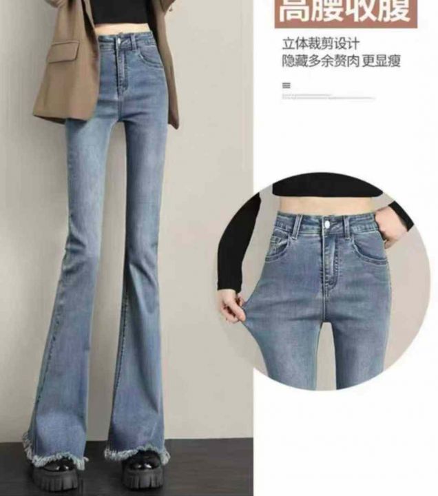 秋季新品高弹力网红爆款洗水棉女装微喇叭牛仔裤,独立...