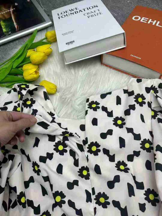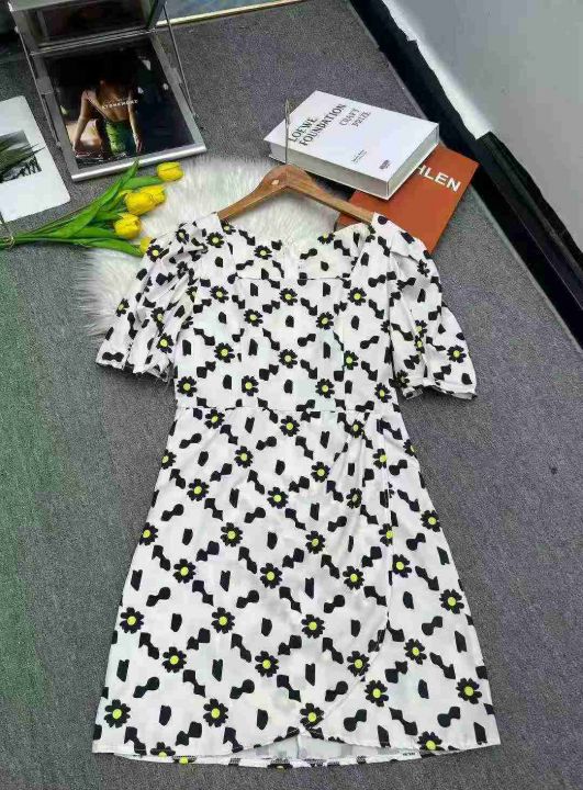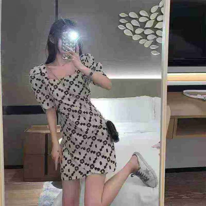 热卖雏菊泡泡袖名媛气质显瘦短袖裙方领设计感连衣裙,独立包装,码数1-5码,数量550条,分货加1,(货号0913#45)