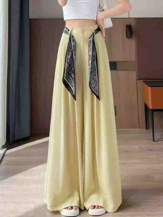 阔腿裤女夏薄款系带高腰显瘦宽松垂感休闲直筒拖地裤,...
