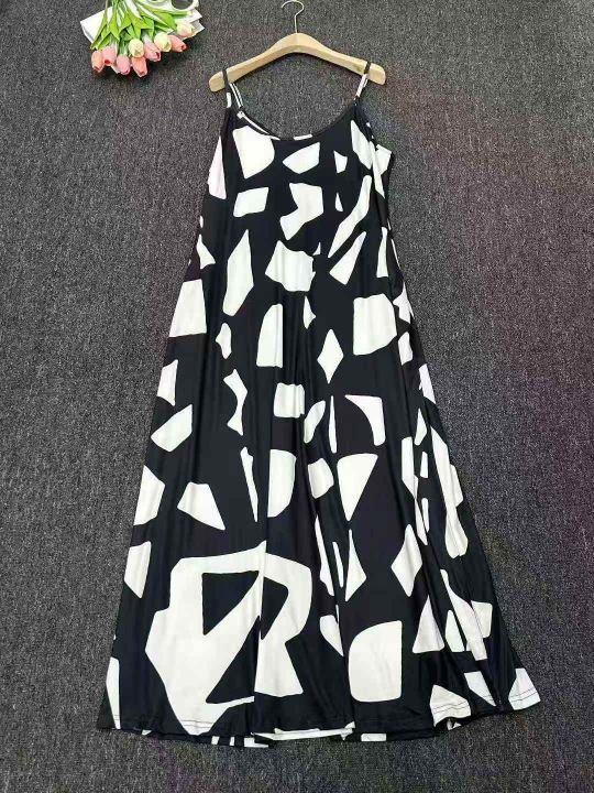 设计感宽松复古印花无袖吊带连衣裙夏季新款海边度假风气质,独立包装,Xl-5XL,142件,全清7.8。 货号:1303