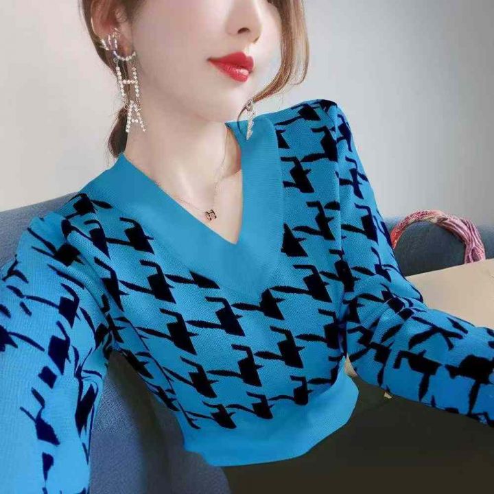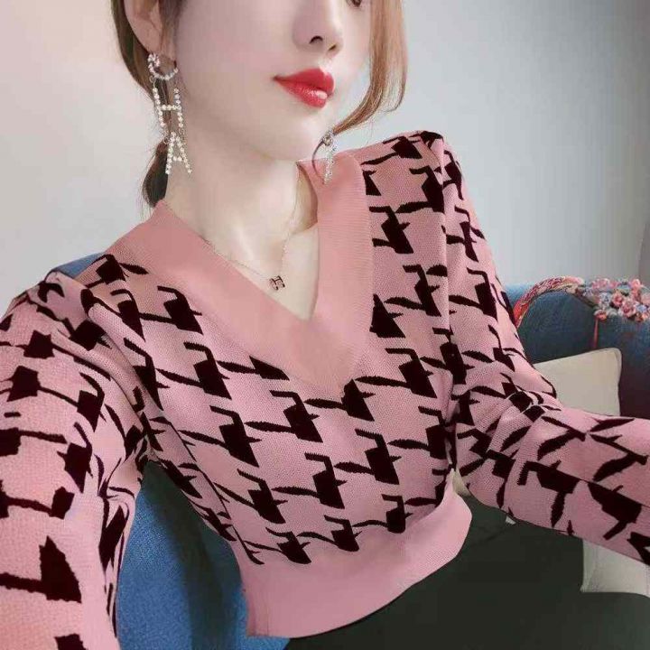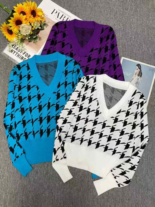 秋冬新款韩版宽松百搭提花V领套头毛衣,独立包装,均...