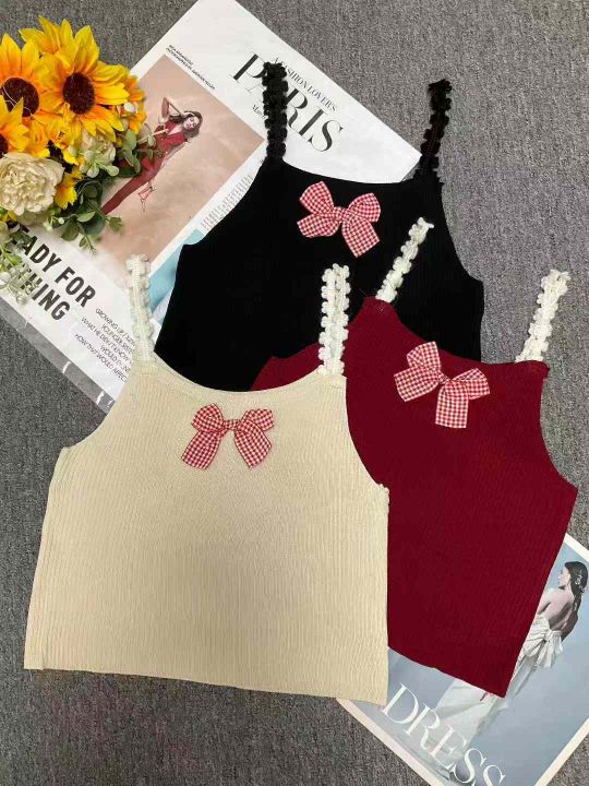 夏季新款港味风格蝴蝶结设计感纯欲辣妹针织吊带独立包装,均码面料柔软舒适...
