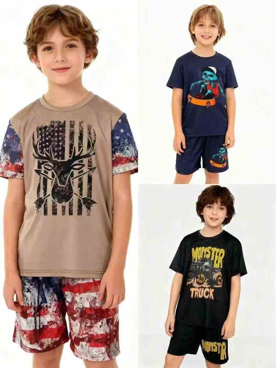 跨境2025爆款童装T恤短袖套装,独立包装,12000件,码数5Y-14Y,全清6.8分...