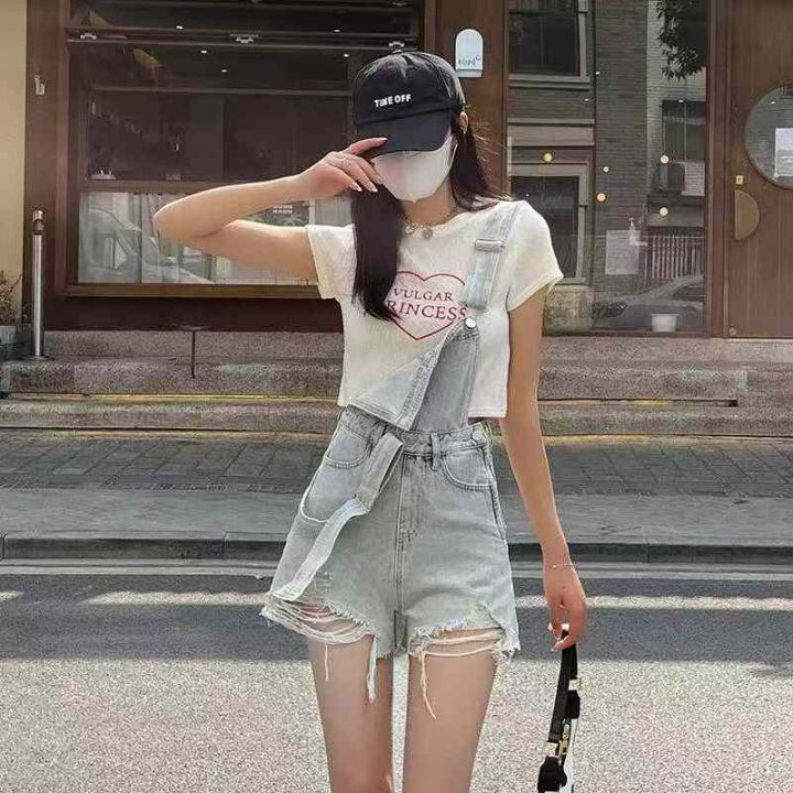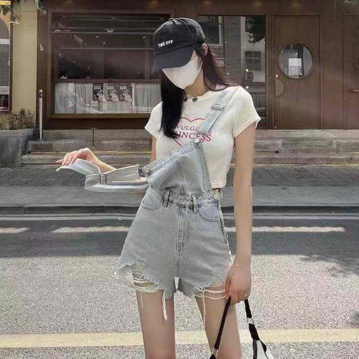 夏季新款洗水棉减龄气质设计感牛仔背带短裤,独立包装...
