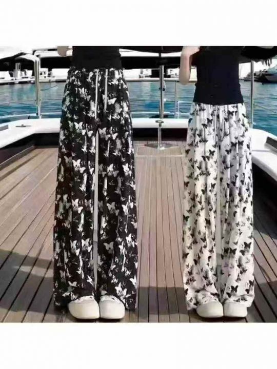 下身阔腿长裤[太阳]全清8.8,2000件,均码,整款新中式水墨蝴蝶冰丝阔腿裤...