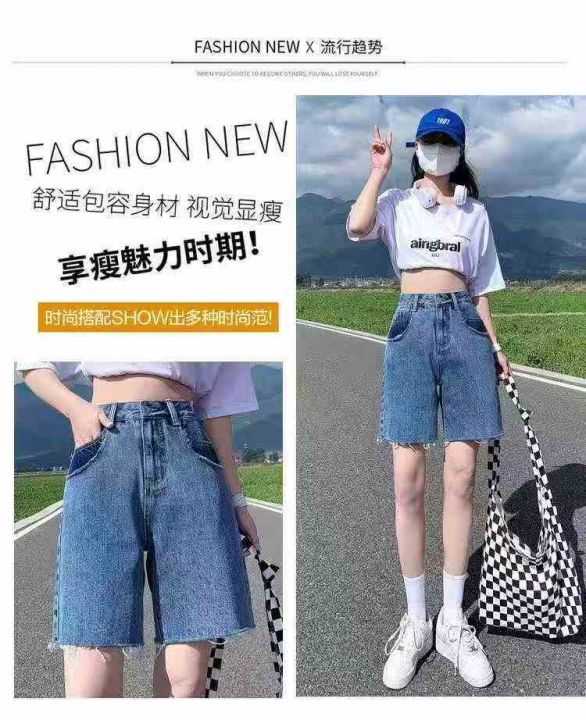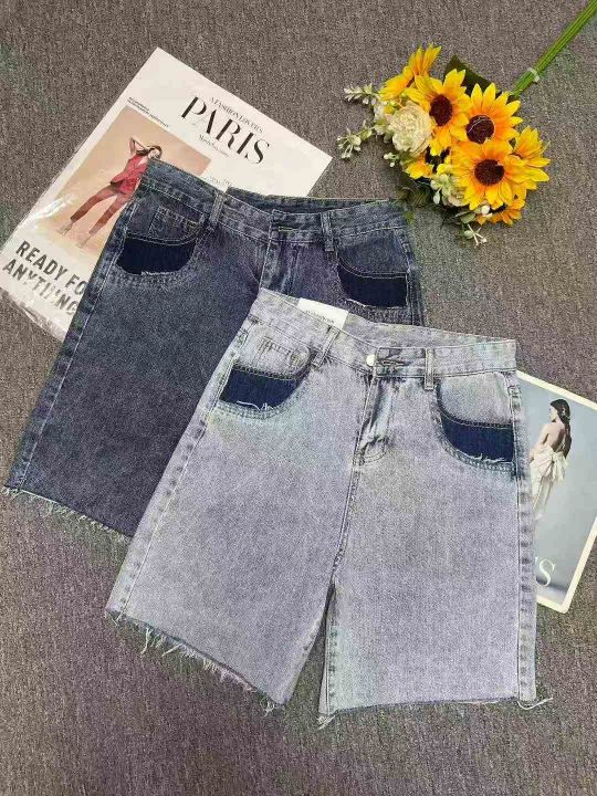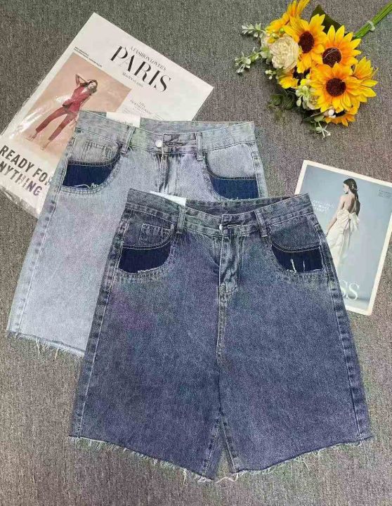 夏季新款撞色洗水棉设计款阔腿牛仔短裤,独立包装带腰...