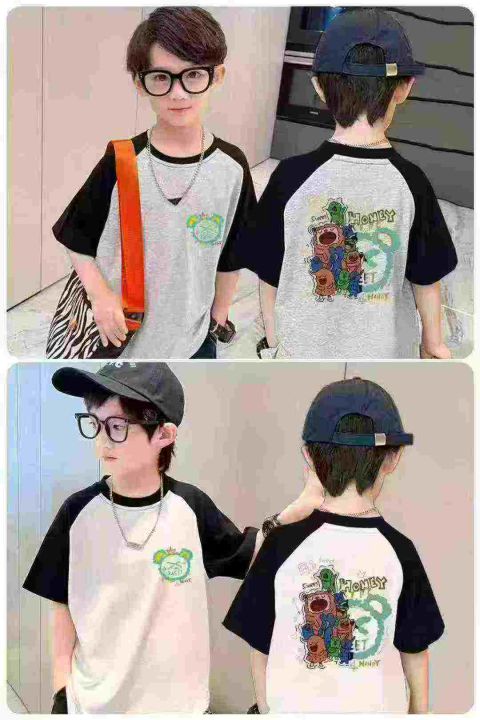 天猫仓回收650件卡通可爱插肩袖儿童纯棉短袖T恤,码数90-150。纯棉面料柔软舒适,版型质量都特别好,货品超好,带纸板独立包装。