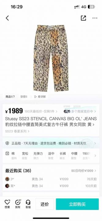 1000多条斯图西Stussy牛仔裤。 货号:32539...