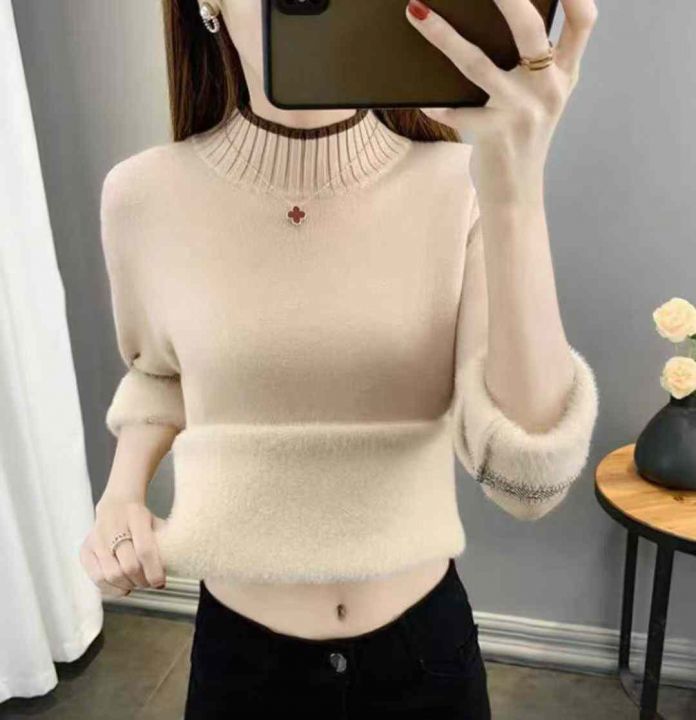 冬季新款高品质女装加绒(一体绒)加厚宽松半高领2条毛包芯纱套头毛衣,独立包装,均码面料软糯舒适,600件,全清9.9元超低价秒杀!分货加一!