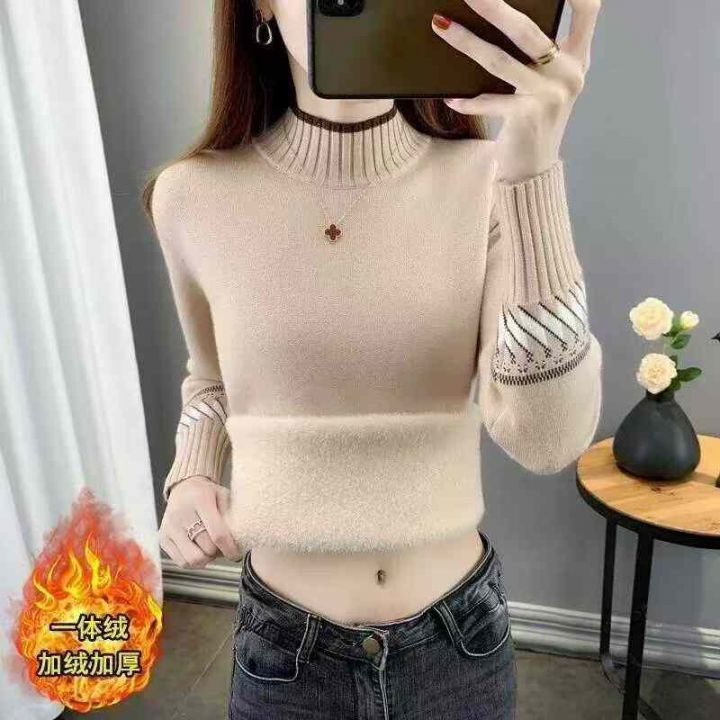 冬季新款高品质女装加绒(一体绒)加厚宽松半高领2条...