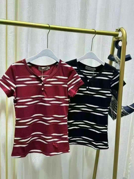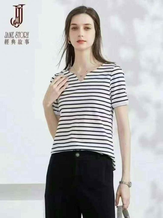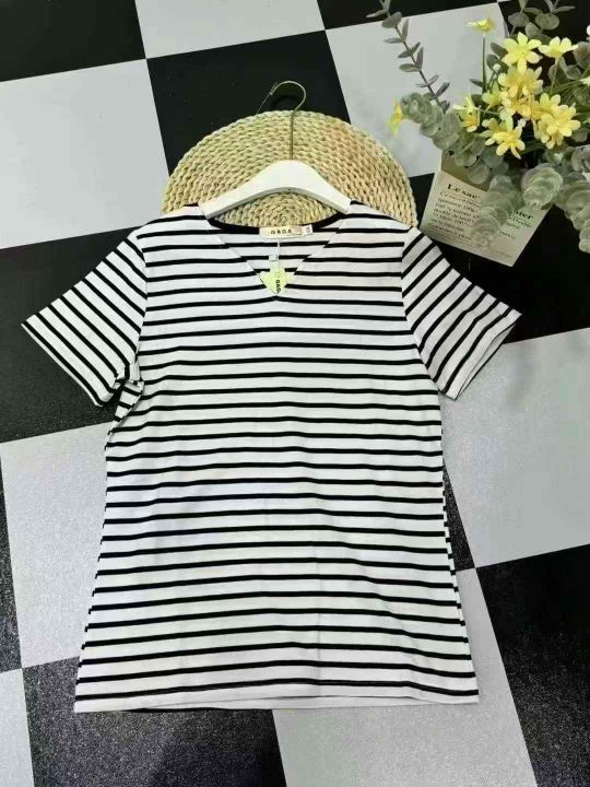 淘宝下架一批纯棉95拉架条纹t恤女士短袖2024夏季新款...
