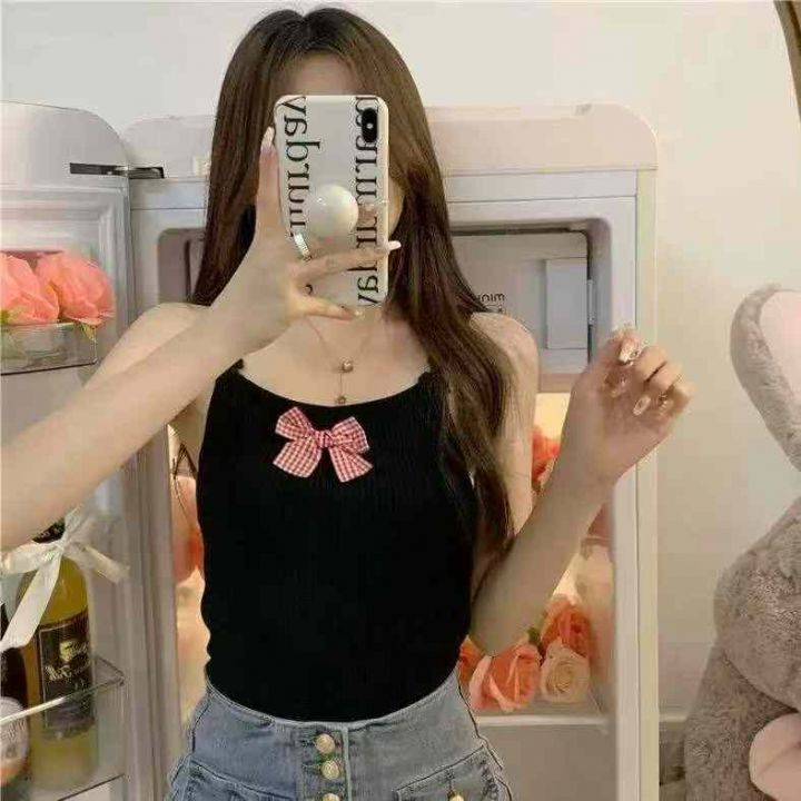 夏季新款港味风格蝴蝶结设计感纯欲辣妹针织吊带独立包...