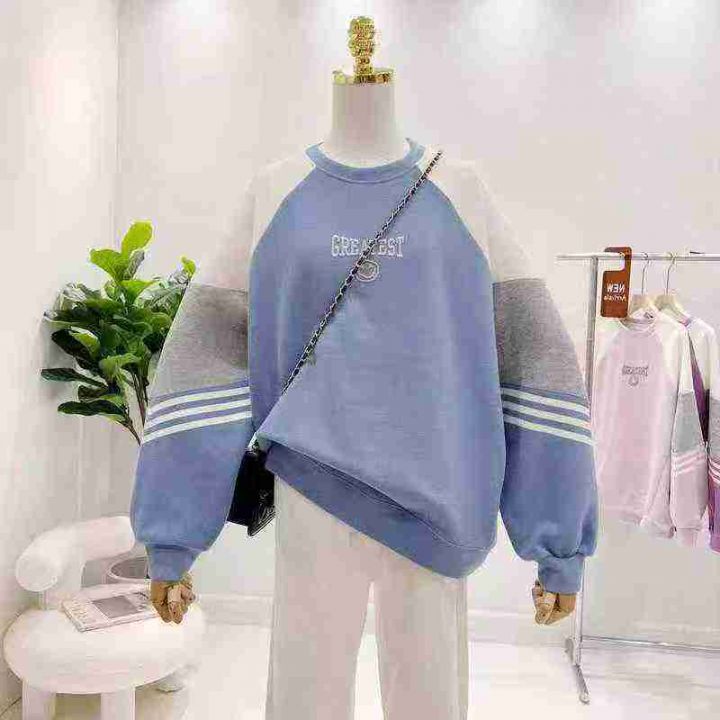 [發]女清仓外贸长袖薄卫衣40件左右运动休闲风时尚拼色刺绣设计感宽松卫衣女...