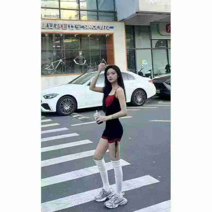 [發]女假两件撞色吊带辣妹连体裤70件独立包装有吊牌 码数3 4设计感高腰连...
