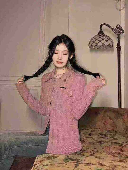 [發]女长袖针织上衣40件左右修身辣妹设计感polo领上衣 独立包装 捡漏价...