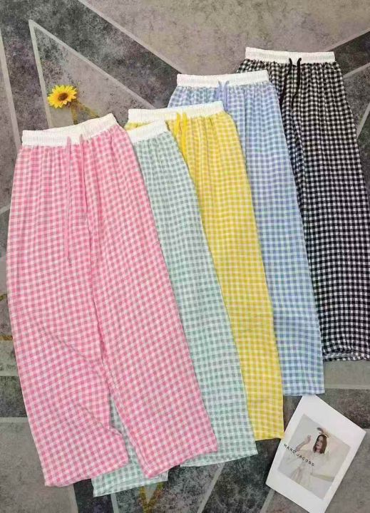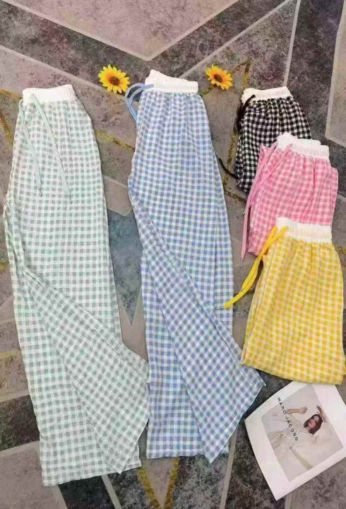 下身阔腿长裤[太阳]多巴胺格子裤白腰全清9.8,2800件,均码,整款