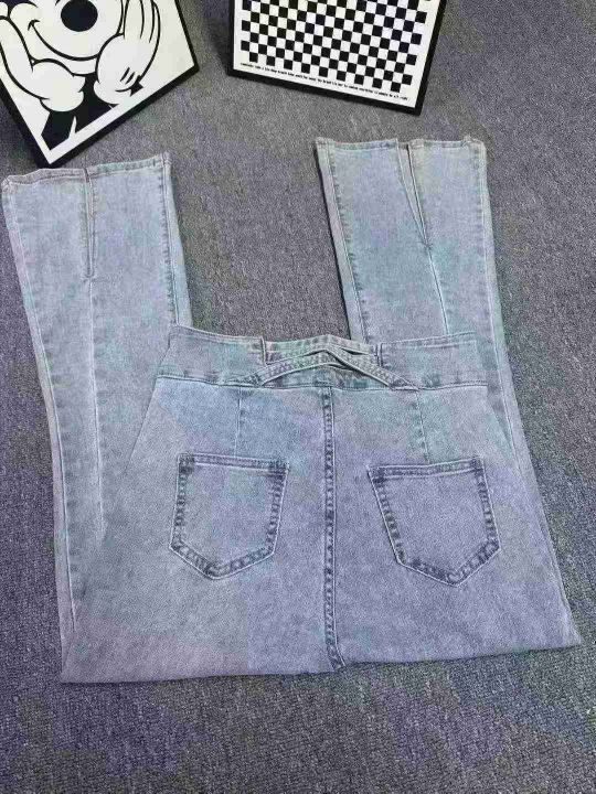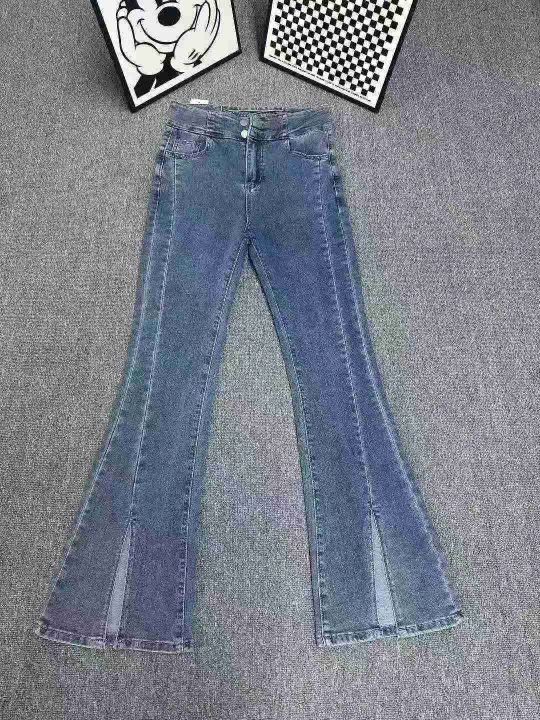 高弹力网红高腰喇叭开叉牛仔裤女,单款四色,独立包装...