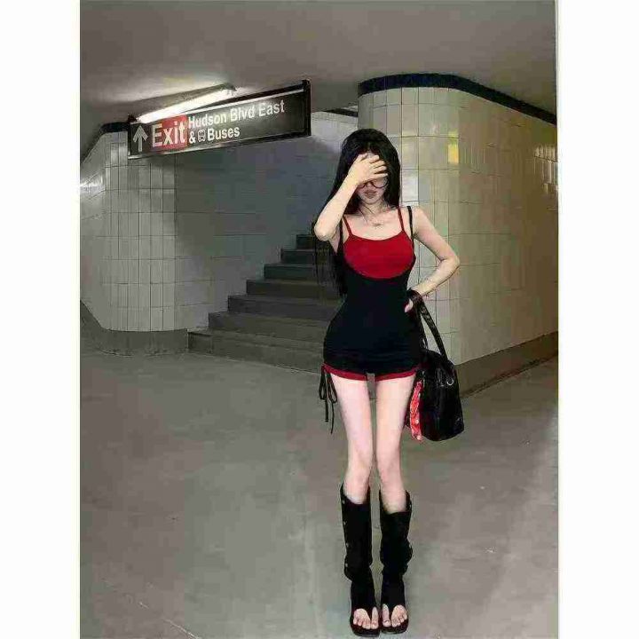 [發]女假两件撞色吊带辣妹连体裤70件