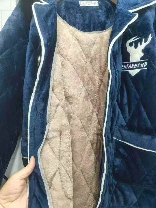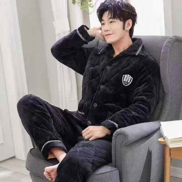 [福]冬季加厚男女睡衣珊瑚绒三层夹棉加绒保暖秋冬法兰...
