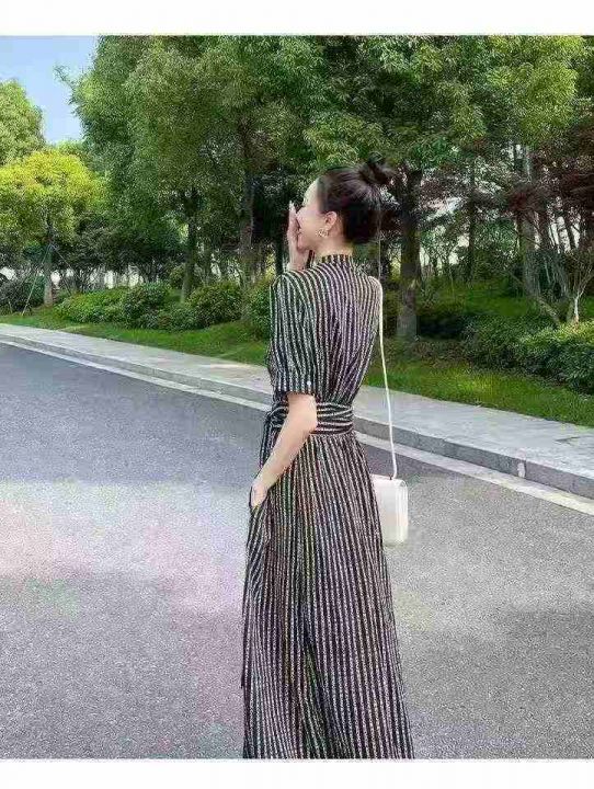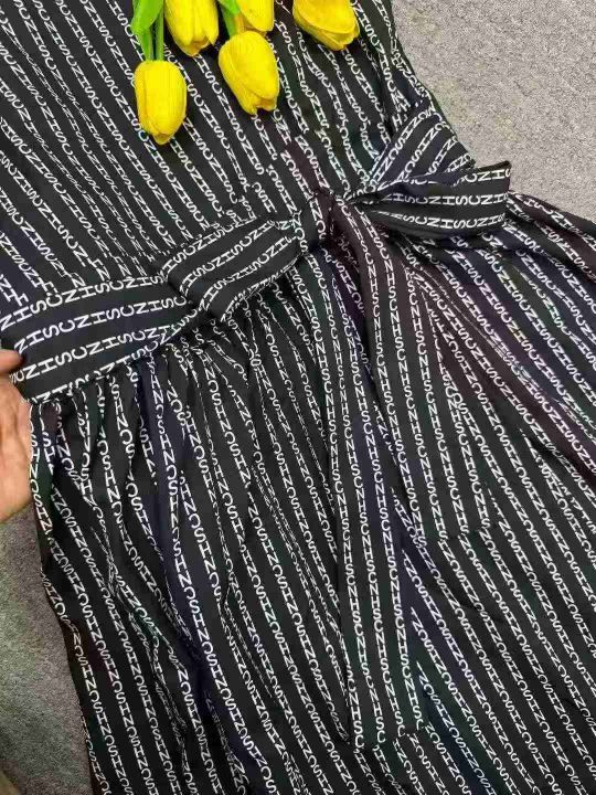 复古法式印花v领显瘦短袖开叉绑带气质长连衣裙,独立包装,码数1-4码,数量382条,1码裙长118厘米,分货加1,(货号0913#44)