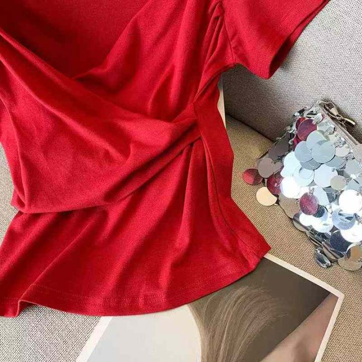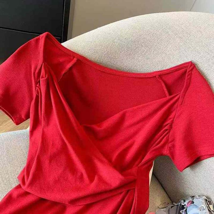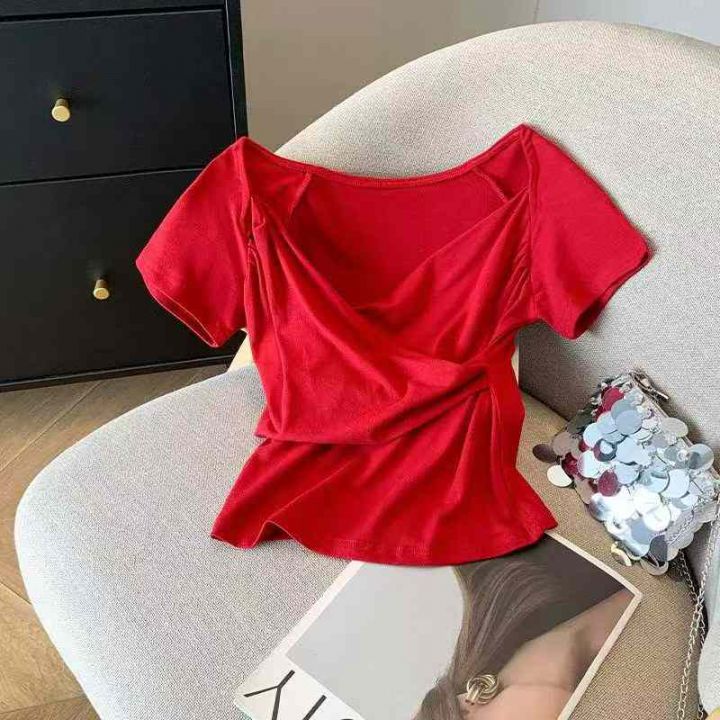 [發]纯欲辣妹性感交叉v领短袖120件左右网红新款,独立...
