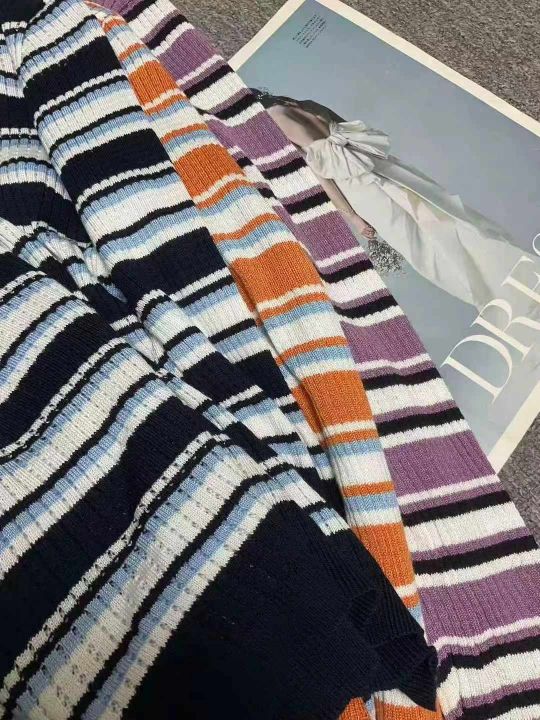 秋冬新款韩系撞色条纹减龄百搭针织套头毛衣,独立包装...