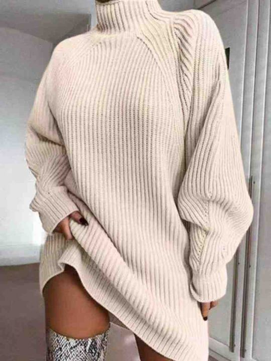 秋冬新款净版简约宽松百搭慵懒风粗针半高领中长款套头毛衣裙,独立包装,均...