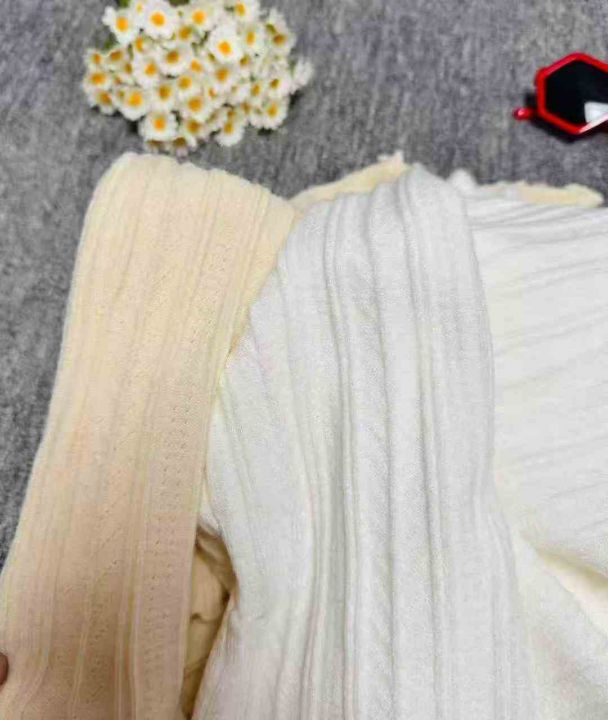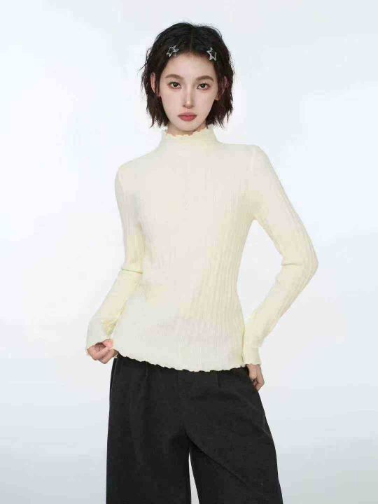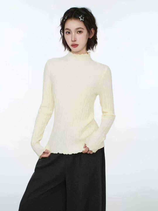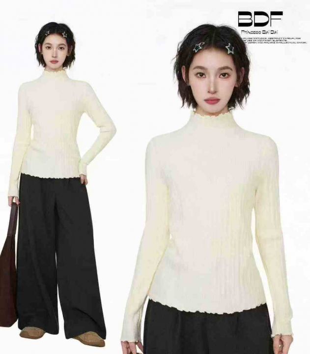 修身百搭半高领木耳边长袖打底衫针织衫,整款两色,手...