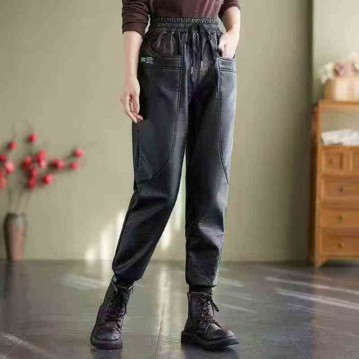 193件冬季新款大码女装加绒加厚女装皮裤,独立包装带...