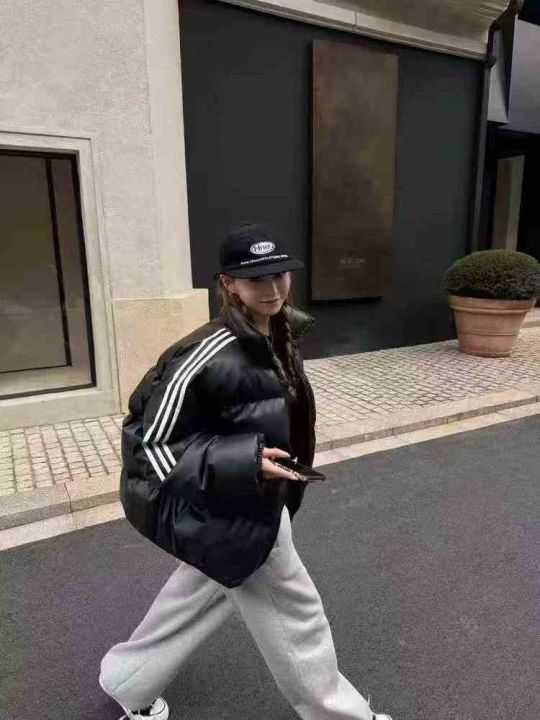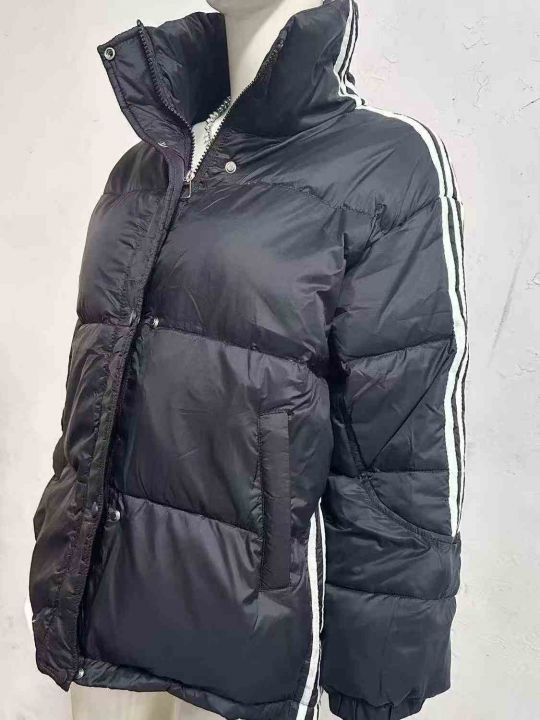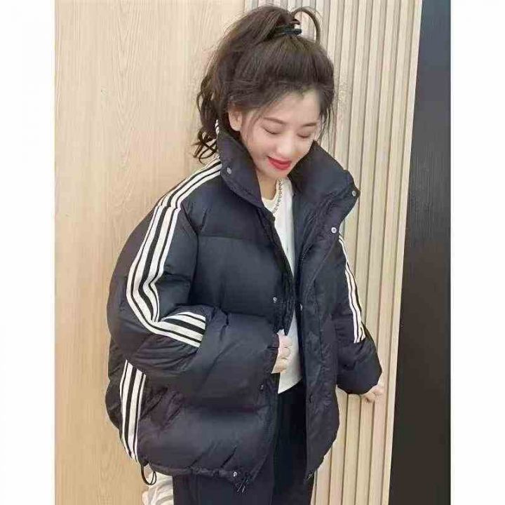 34.8清1500件欧货羽绒棉服外套女短款冬款小个子运动风条纹面包服潮 码数S-M (宽松版型M码穿140斤) 独立包装 分货加一。 货号:24862