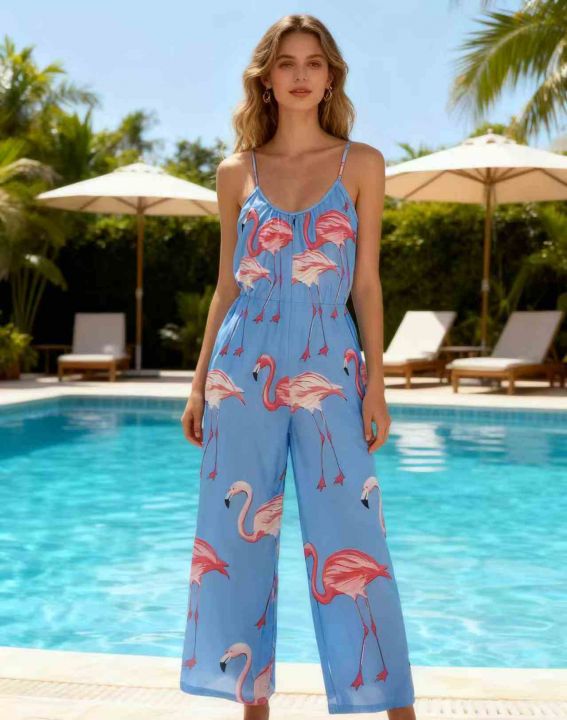 302件,亚马逊跨境女装独立站春夏风格印花褶皱吊带裤连体裤时髦百搭,独立包装,码数M-2XL,全清6.8元,分货➕0.5