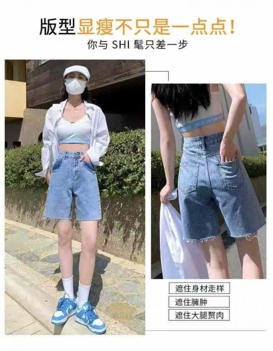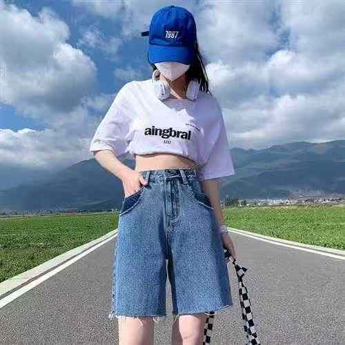 夏季新款撞色洗水棉设计款阔腿牛仔短裤,独立包装带腰...